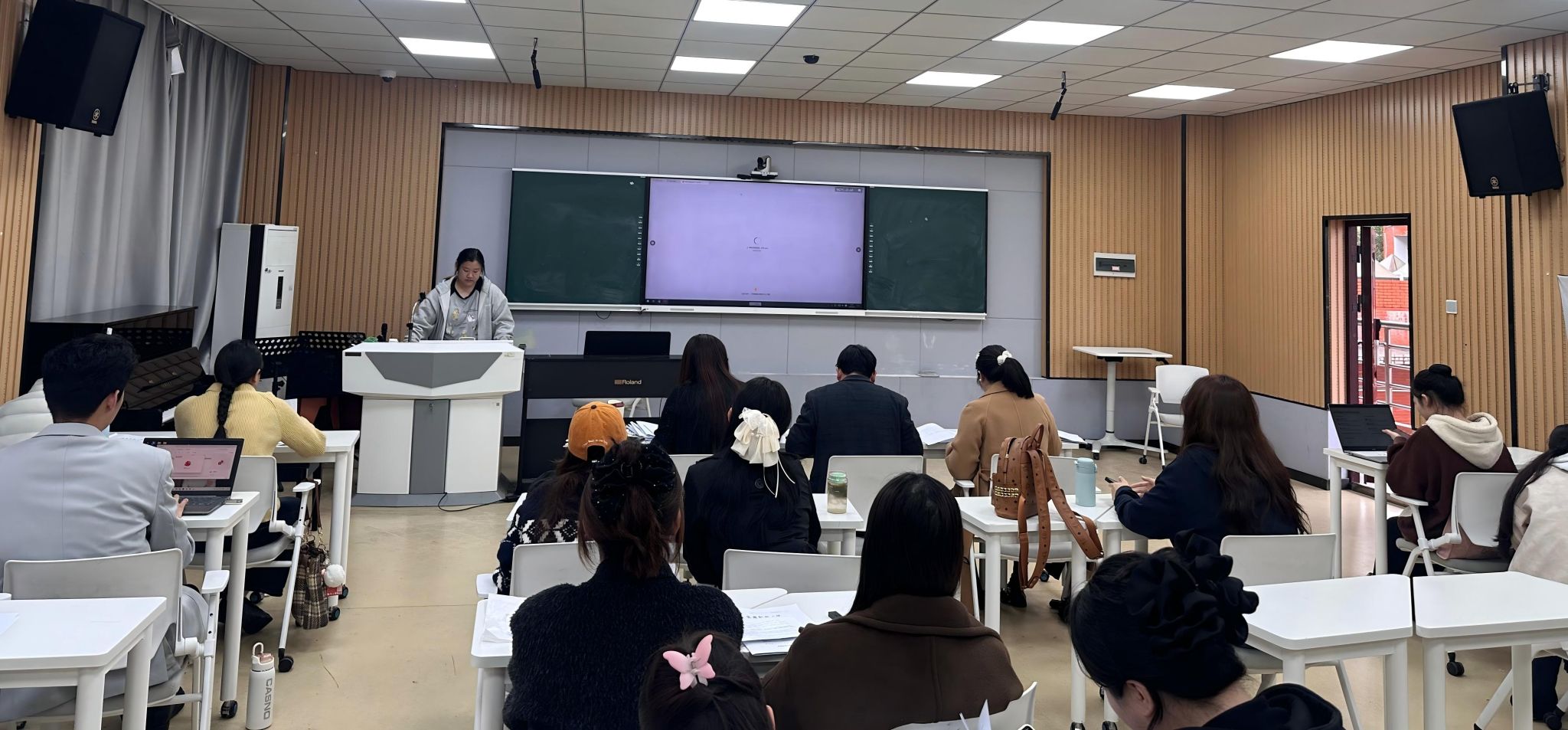 智慧教室顺利举行。副院长彭传山、副院长高艳、教务处创新产业办公室朱梦钰老师担任本次评审评委。