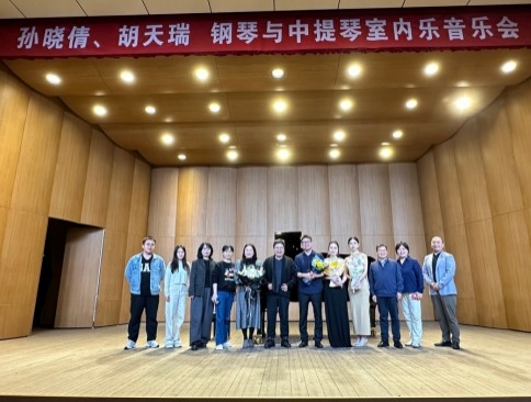 青年钢琴教师孙晓倩博士、安徽师范大学青年中提琴教师胡天瑞博士携手登台,为现场师生献上一场跨越中西、融汇古今的音乐盛宴, 音乐会导聆为孙斐然博士。