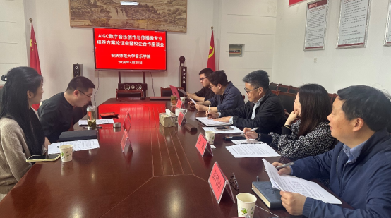 召开AIGC数字音乐创作与传播微专业培养方案论证会暨校企合作座谈会。党委书记张铭,副院长徐冉、高艳、彭传山,安徽广电矩阵传媒科技有限公司董事、总经理朱小勇及校企双方相关代表出席会议,共同研讨微专业建设规划与校企协同育人路径。
