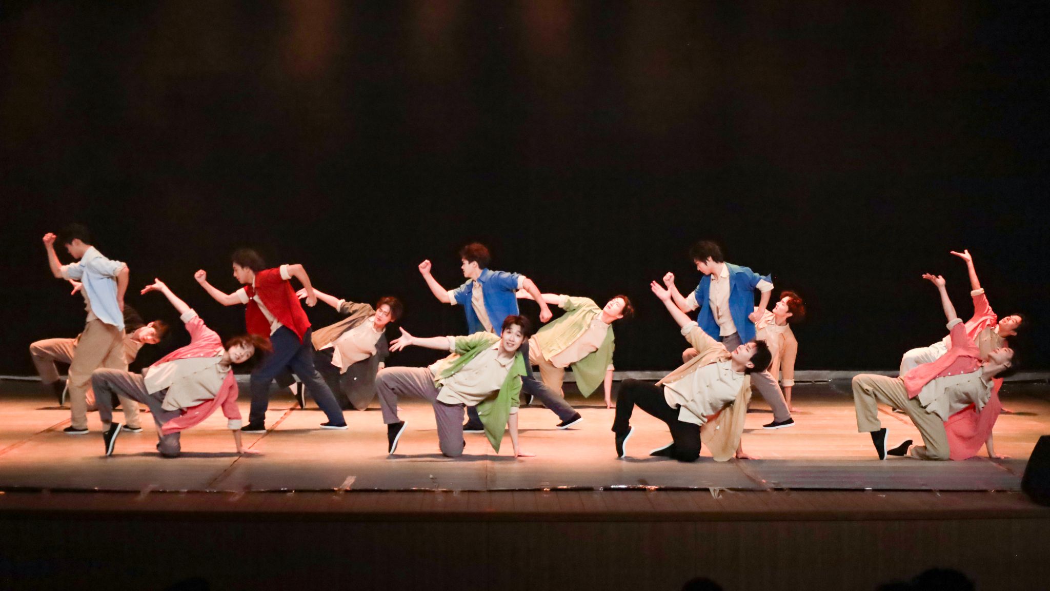 动人的民族舞蹈、活力的现代舞步、深情的剧目演绎……舞蹈专场在课堂与剧目的交织中展开。在《古典舞基本功训练——把上组合》中,舞者们身着统一练功服,随着钢琴伴奏在把杆旁完成擦地、控制等系列动作,动作整齐划一,姿态舒展优美,展现出了扎实的基本功。课堂的严谨与舞台的绚烂交相辉映,2023级鼓子秧歌组合的表演同学们用力甩动鲜红绸带,脚下步伐铿锵有力,洋溢着北方民间的热情与豪迈,充满了蓬勃的生命力。
