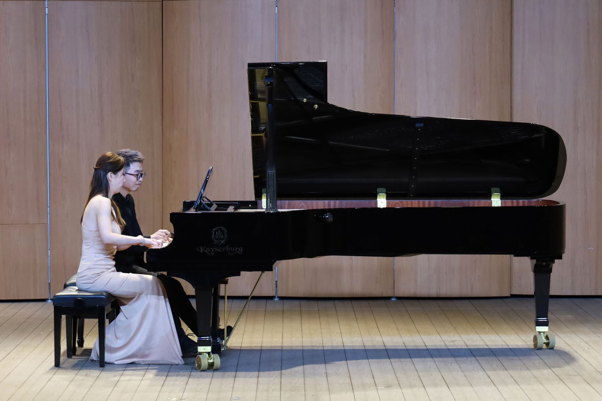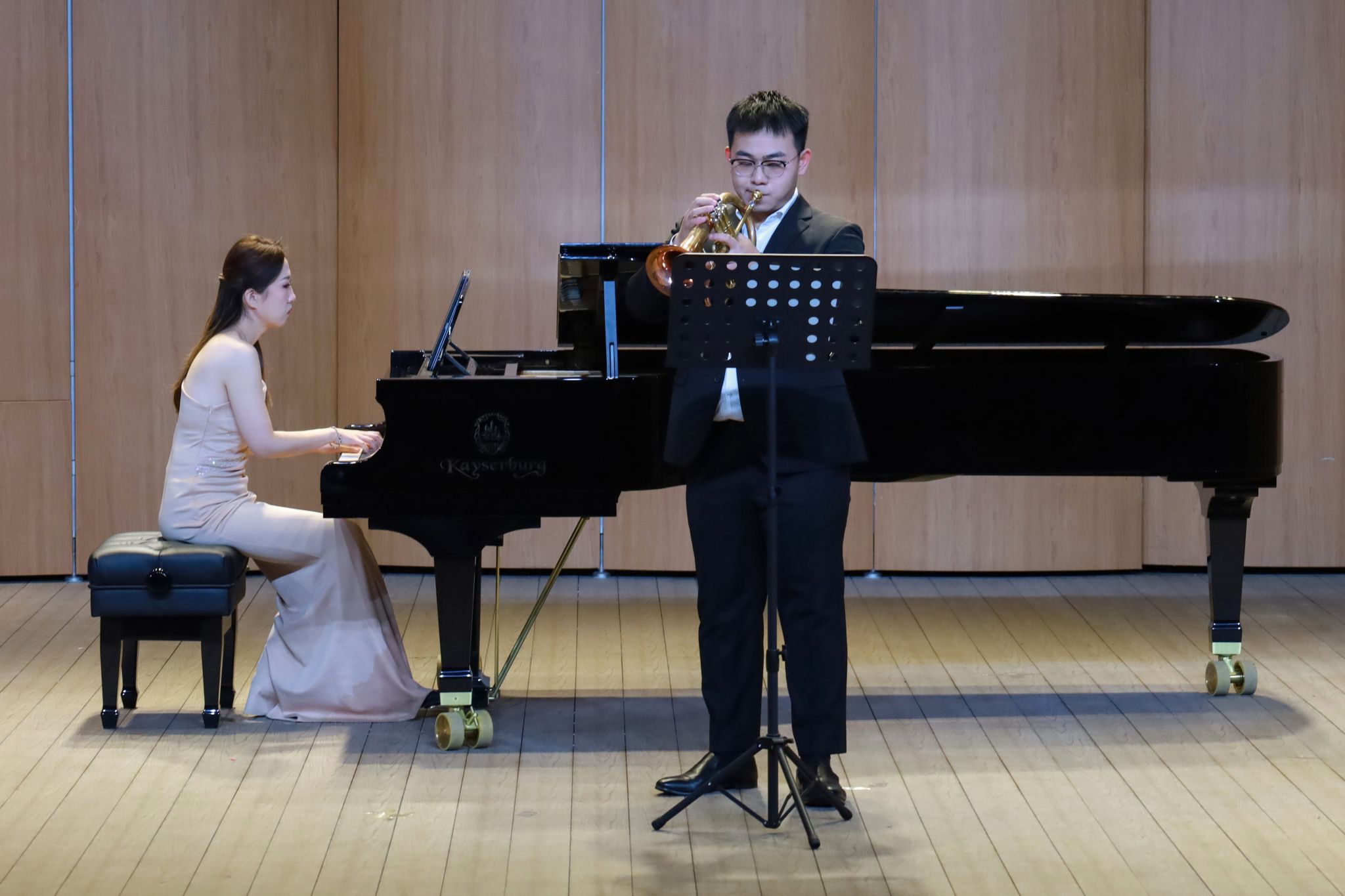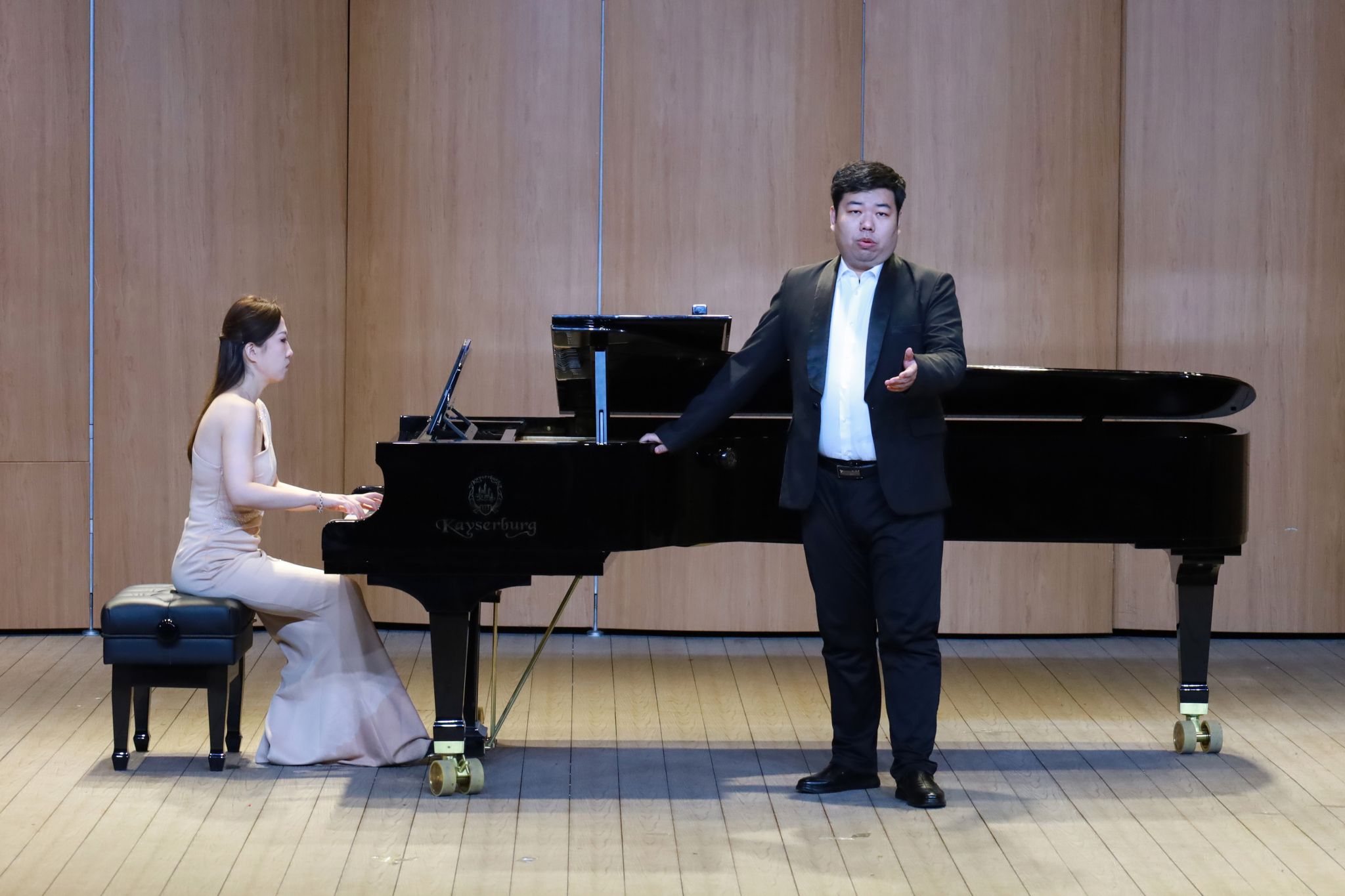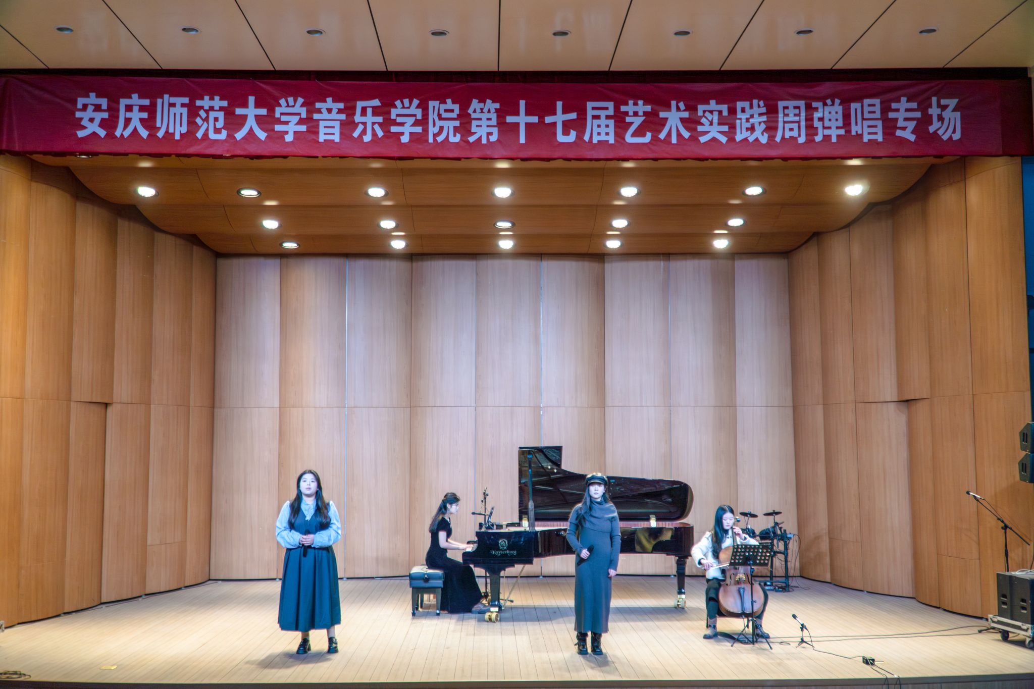 优雅的钢琴演奏、沉醉迷人的声乐演出、各式不同的器乐呈现……声钢器学生专场精彩纷呈。弹奏钢琴曲《意大利协奏曲BWV971》,手指在琴键上轻快跃动,音乐时而活泼灵动,时而舒缓悠长;演奏二胡曲《豫北叙事曲》,琴弓在琴弦上缓缓游走,旋律如歌如诉,描绘出对故乡的深深眷恋。