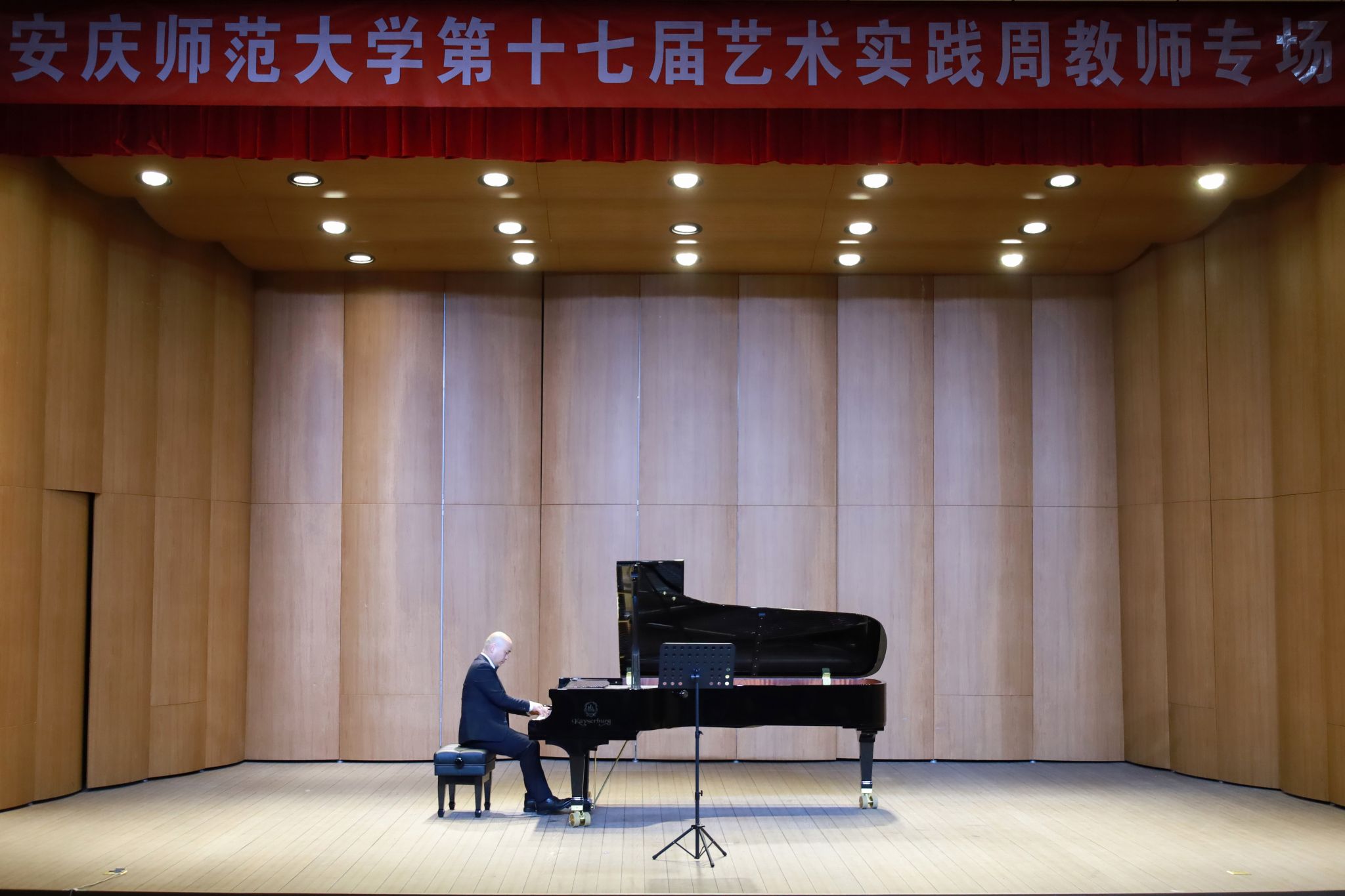 演出伊始,高泽鹏老师率先登台,以一首陆华柏先生的《故乡》拉开帷幕。琴声悠扬婉转,满含对故土的眷恋与深情,瞬间将观众带入悠远的意境之中;精湛的钢琴独奏、悠扬的旋律、默契的器乐合奏——教师孙晓倩演奏《第二钢琴奏鸣曲》,她的手指时而有力地敲击琴键,奏出低沉而震撼的音符,时而又轻柔地掠过,流淌出流水般清澈的高音旋律,情感的起伏变化牢牢抓住了观众注意力,让人沉浸其中。何懿铄老师以英文歌曲《Come to me in my dreams》深情吟唱,弗兰克・布里奇的旋律搭配婉转歌喉,传递出跨越语言的情感共鸣;罗哲老师演奏的马思聪名作《思乡曲》,弓弦交错间满是乡愁与牵挂,让观众沉醉其中;杨飞虎老师的钢琴独奏肖邦《降 A 大调 “英雄” 波兰舞曲》气势恢宏,铿锵有力的节奏与灵动的指法,将 “英雄” 的豪迈与浪漫诠释得淋漓尽致,赢得全场阵阵掌声。