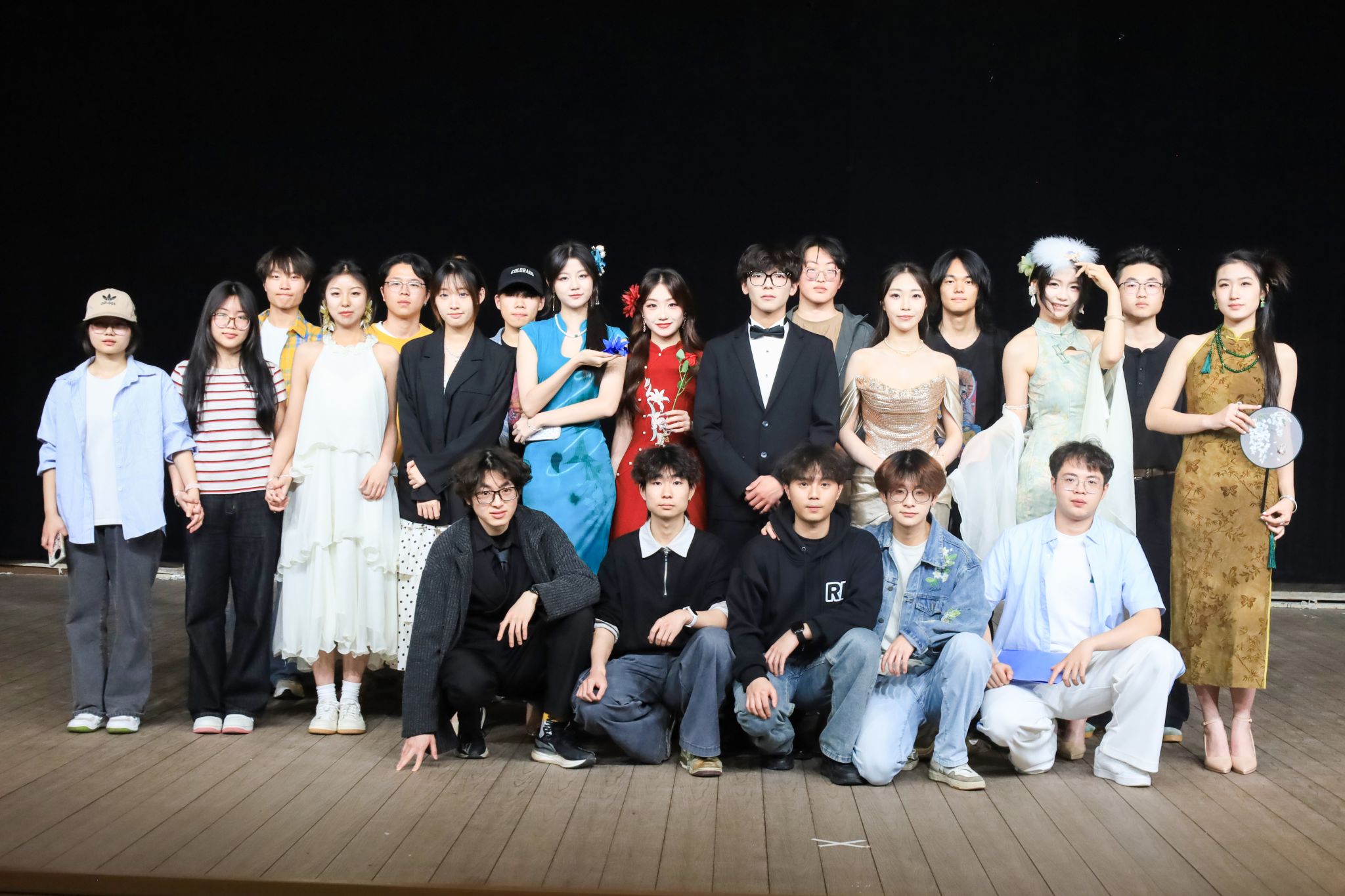 开场一曲《聊表心意》婉转而起,像有人在耳边轻轻诉说心事,旋律抚过心头,让观众不知不觉卸下了一天的疲惫。随后,舞蹈《Fearless》以热血有力的舞步释放出青春的能量,吉他弹唱《Like a Star》则在指尖流淌出宁静而坚定的星光,仿佛在告诉每一个聆听者:你并不孤单。旗袍走秀《绝代风华,旗遇今生》一颦一笑间,带着古典的从容与优雅,如一场视觉上的“芳香疗法”,让人心神安宁。